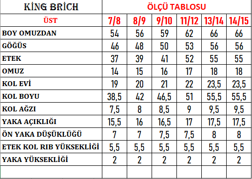 Beden: (8/9 YAŞ) Boy:128 cm - Kilo:27kg - Göğüs:62cm - Bel:56cm- Kalça:65cm
